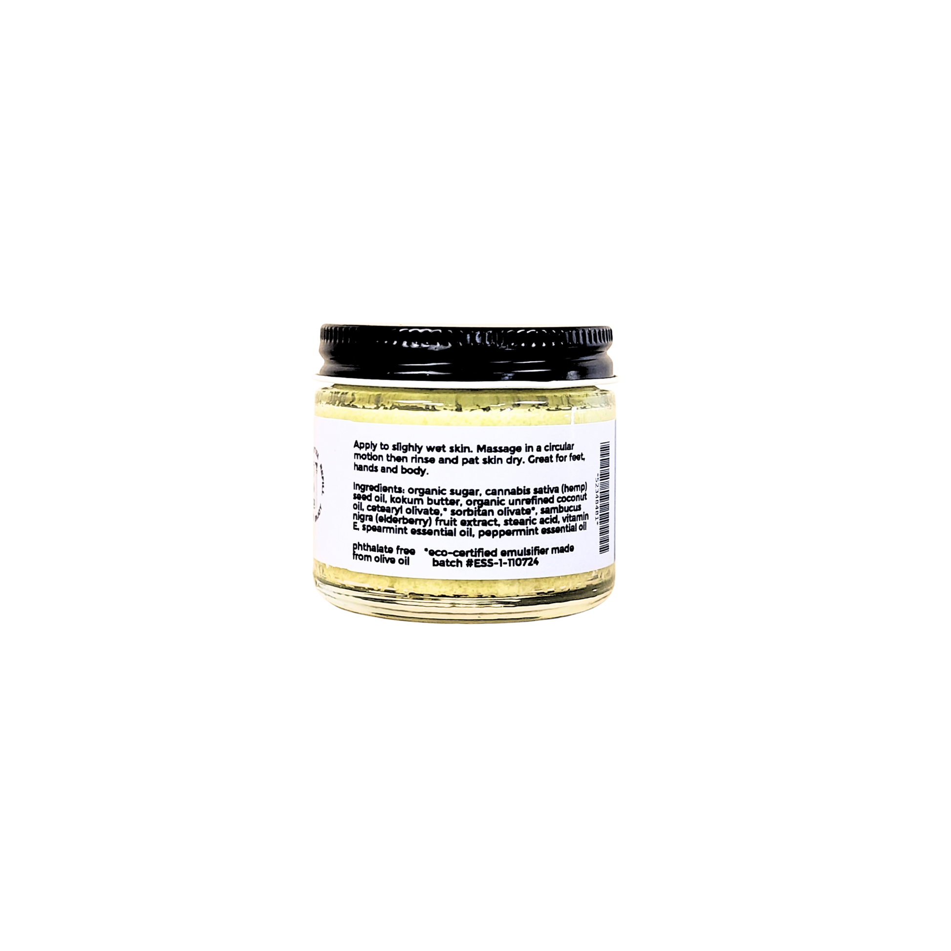 Organic Sugar, Hemp Seed Oil, Kokum Butter, Organic Coconut Oil, Vitamin E, Spearmint, Peppermint, & Stearic Acid, Sambucus Nigra Fruit Extract