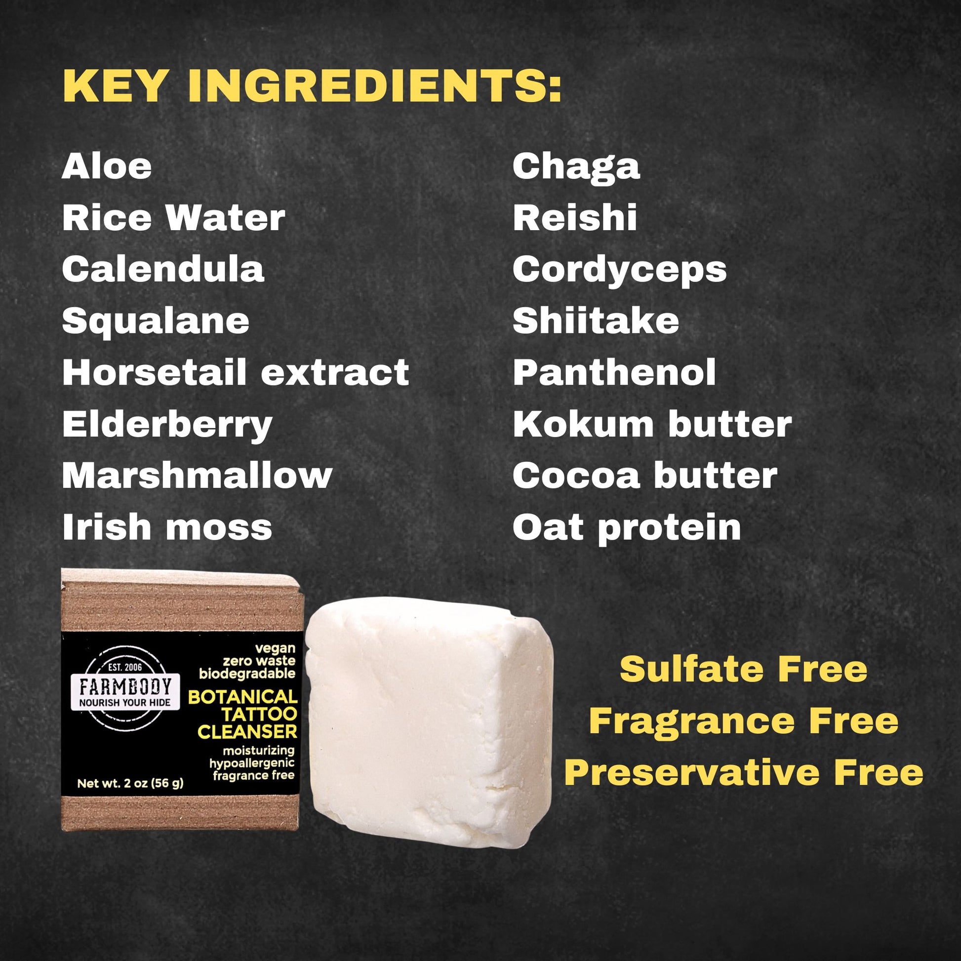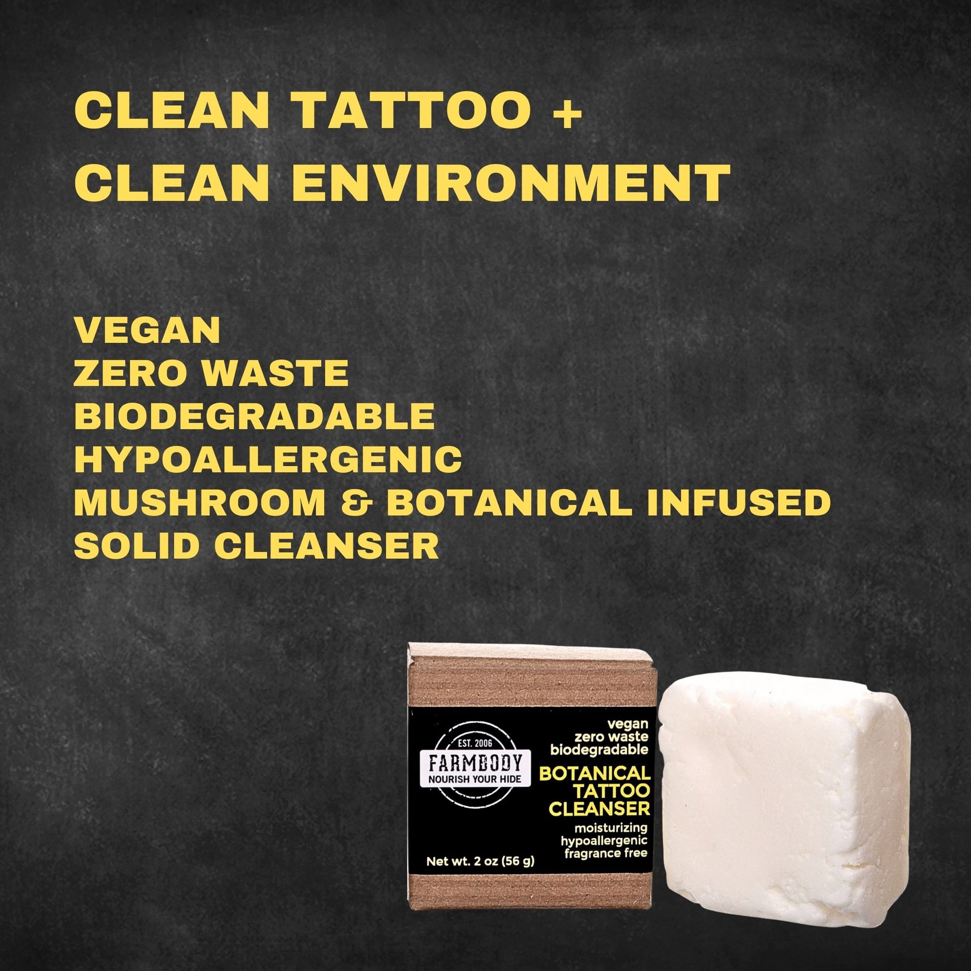Proper aftercare is essential to helping your new tattoo heal. We created this first of its kind solid botanical tattoo cleanser so you can safely cleanse your new tattoo and speed the healing process.